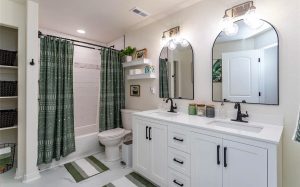 - A new vanity can significantly change the bathroom’s aesthetics. Choose one with ample storage that doesn’t compromise on style. Opt for double sinks if you have space for a more convenient family experience.